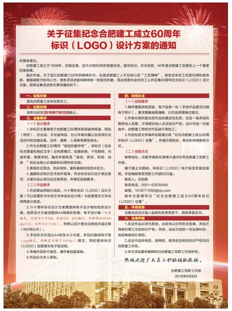 關于征集紀念合肥建工成立60周年標識(LOGO)設計方案的通知