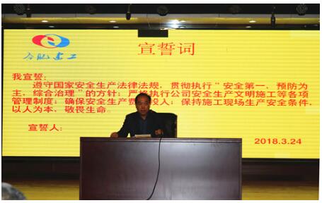 會上,在總經理助理、安委會委員黃健的帶領下,全體與會人員面向安全“誓旗”,進行了莊嚴的宣誓,將“遵守國家安全管理法律法規、貫徹安全管理方針、執行公司安全管理制度、確保安全生產費用投入、保持施工現場生產安全條件”的誓言牢記心間,真正做到“以人為本、敬畏生命”。