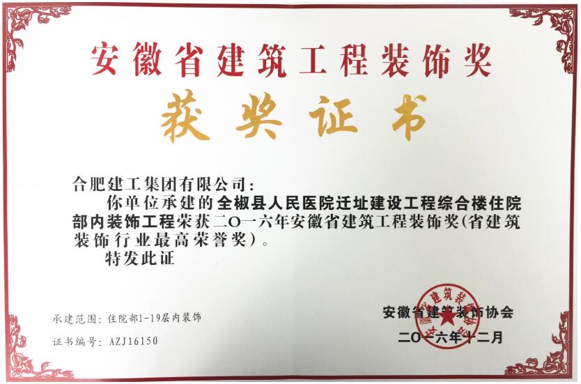 2016年安徽省建筑工程裝飾獎