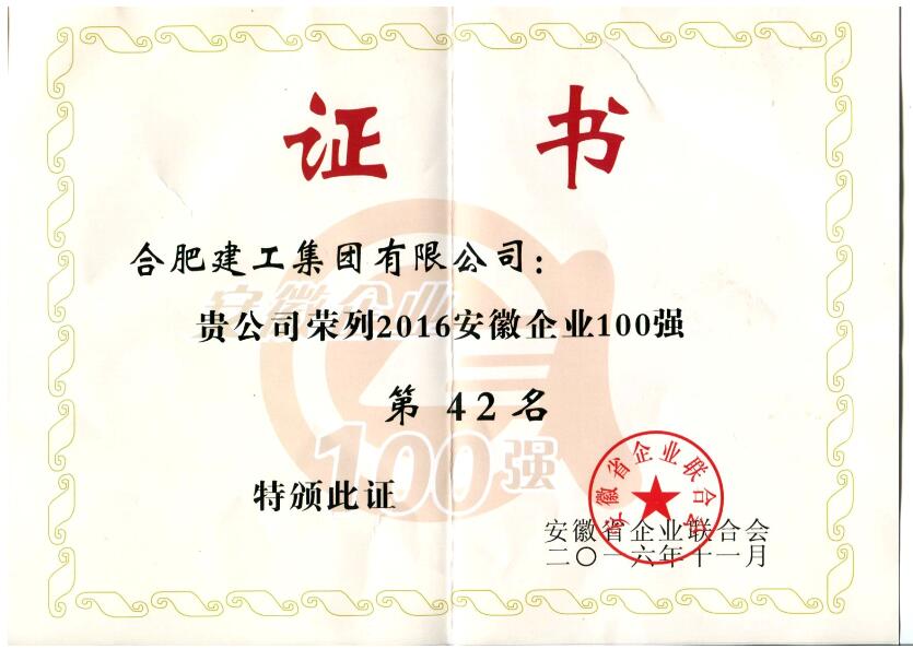 2016年安徽企業100強42名